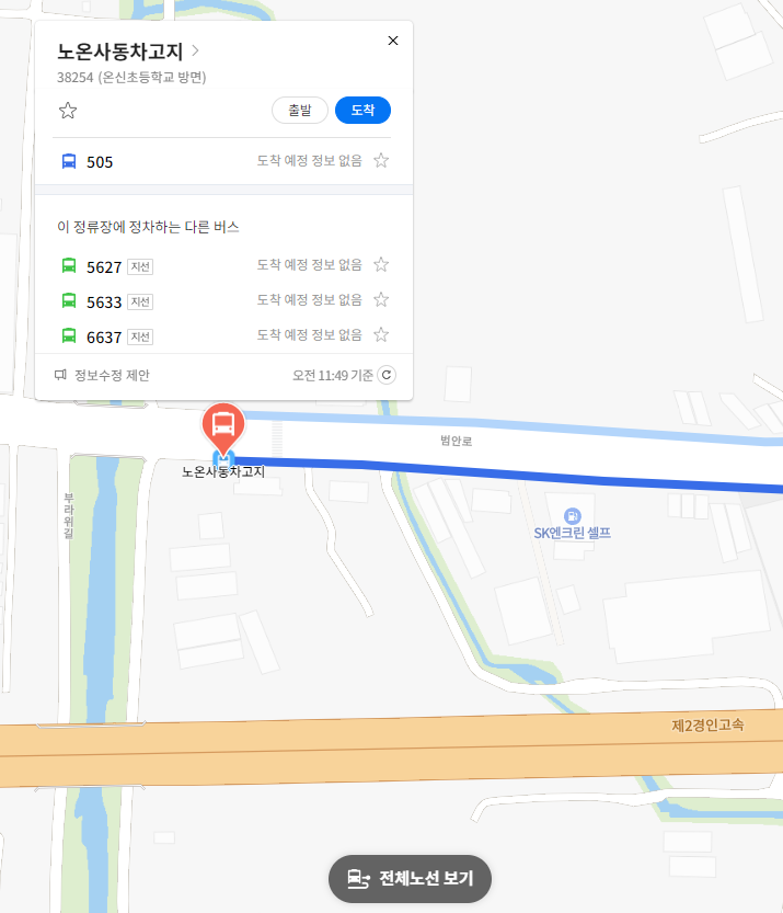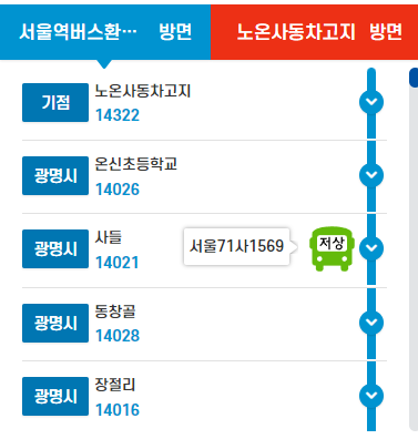 첫 번째 정류장 노온사동차고지 위치 알아보기