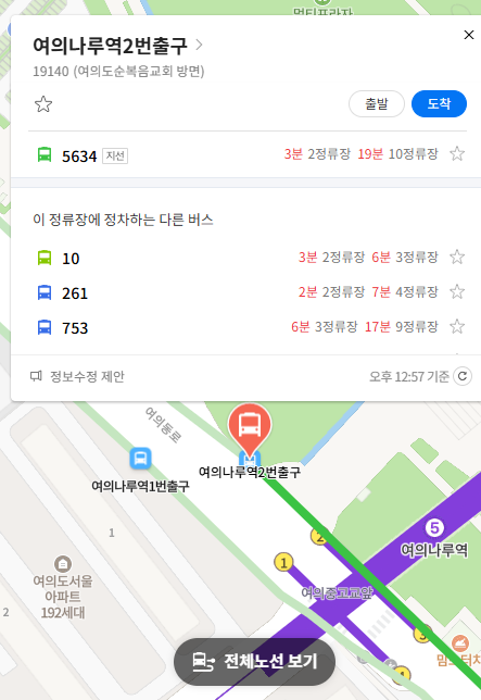 마지막 정류장 여의나루역2번출구 위치 알아보기