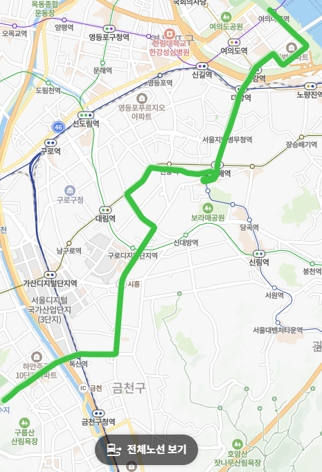 ● 관악구와 영등포구를 직접 연결: 관악구 신림동에서 영등포의 주요 지역인 영등포역까지 환승 없이 한 번에 이동할 수 있어 편리합니다.