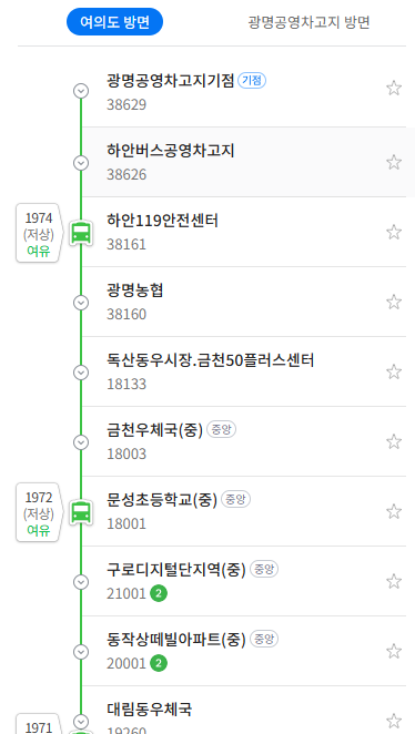 종점행 : 첫차 : 05:05 막차 : 23:35