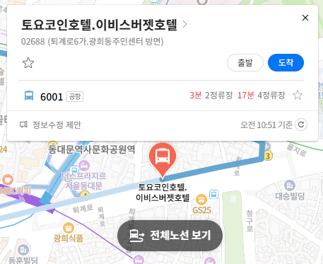 마지막 정류장 토요코인호텔.이비스버젯호텔 위치 알아보기