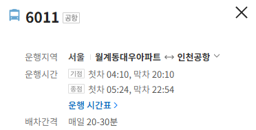 서울 6011번 공항 버스 노선 정보