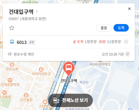 세종대·건국대 학생 및 교직원을 위한 최적의 노선세종대학교와 건국대학교 정문을 직접 통과하거나 인근을 지납니다. 해외 연수, 교환 학생, 혹은 방학 중 여행을 떠나는 대학생들과 업무차 출장을 가는 교직원들에게 대체 불가능한 편리함을 제공합니다.