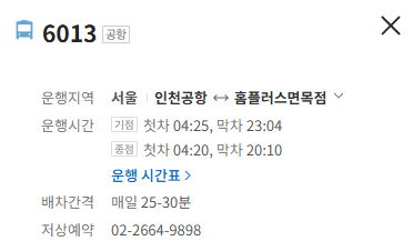 서울 6013번 공항 버스 배차간격