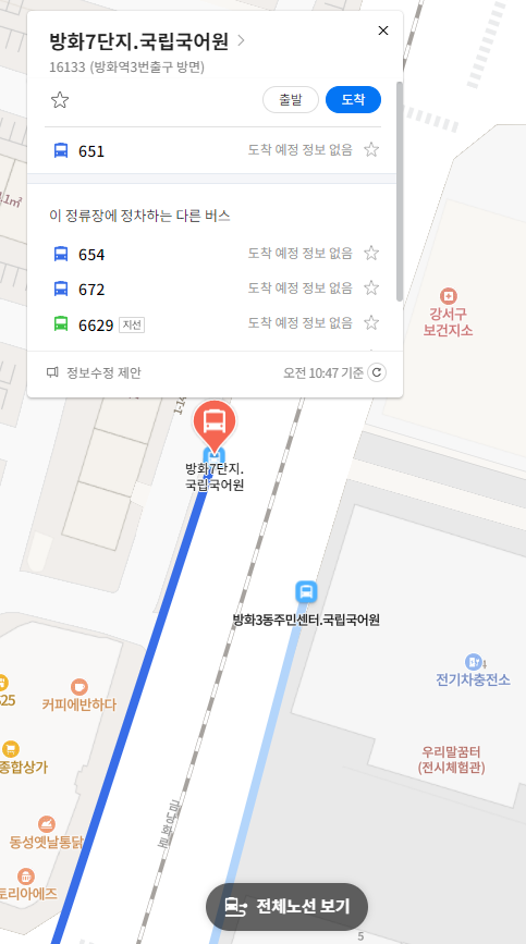 첫 번째 정류장 방화도시7단지.국립국어원 위치 알아보기