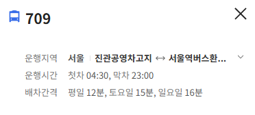 서울 709번 버스 배차간격