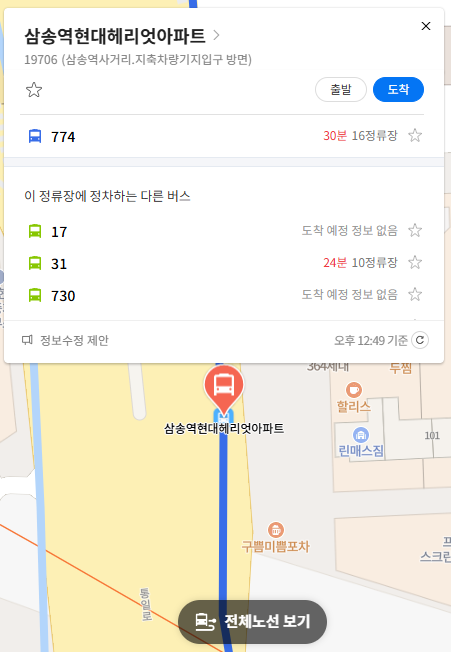 실시간 위치를 확인하시면 현재 버스의 위치를 알 수 있습니다.