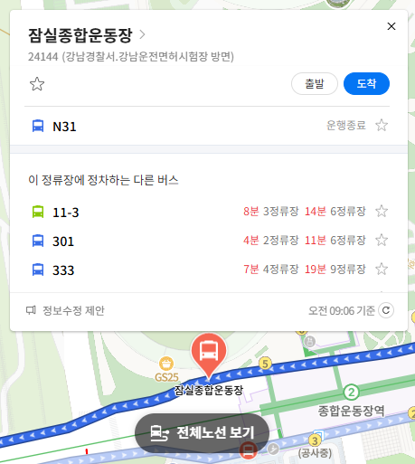 주요 버스 정류장 잠심종합운동장 위치 알아보기