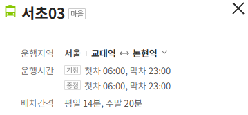 단순히 역만 지나는 것이 아니라, 강남역 일대의 대형 학원가, 병원, 쇼핑몰, 음식점 밀집 지역을 통과합니다. 자차를 이용하기에 주차가 매우 어려운 이 지역에서 서초03번은 마치 전용 셔틀버스처럼 편리한 이동권을 제공합니다.