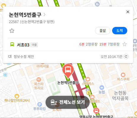 주요 버스정류장 논현역5번출구 위치 알아보기