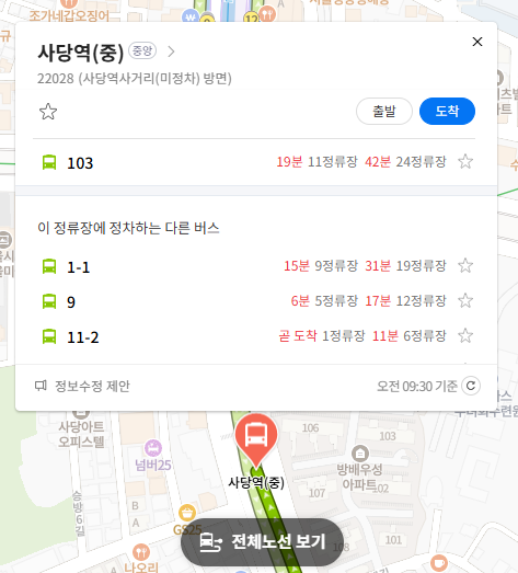 주요 버스정류장 사당역(중) 위치 알아보기