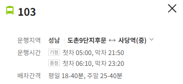 성남 103번 버스 배차간격