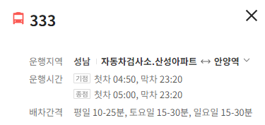 종점행 : 첫차 : 05:00 막차 : 23:20