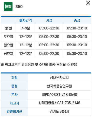 기점행 : 첫차 : 05:00 막차 : 22:30