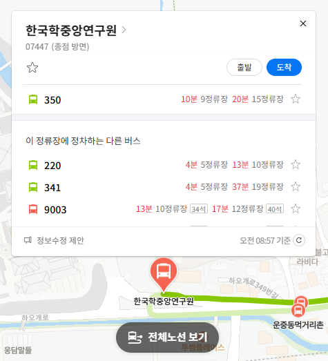마지막 버스 정류장 한국학중앙연구원 위치 알아보기