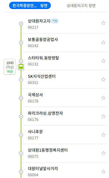 종점행 : 첫차 : 05:30 막차 : 23:10