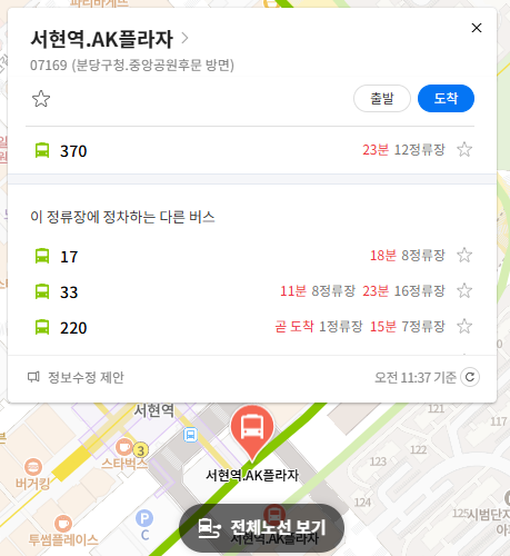 주요 버스 정류장 서현역.AK플라자 위치 알아보기