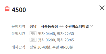 -성남 4500번 버스 노선 정보