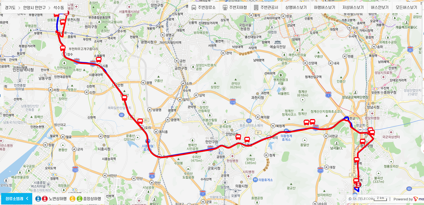 실시간 위치를 확인하시면 현재 버스의 위치를 알 수 있습니다.