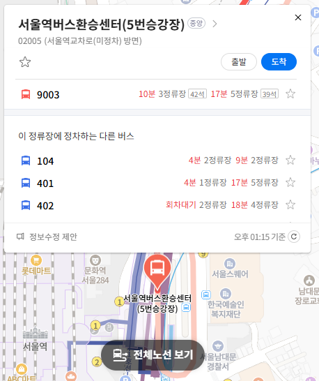 마지막 정류장 서울역버스환승센터(5번승강장)(중) 위치 알아보기
