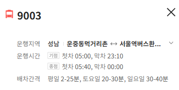 성남 9003번 버스 배차간격