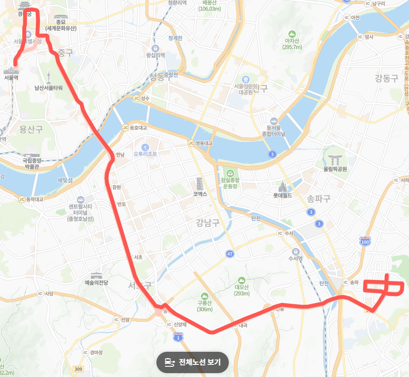 ● 고속화 도로 이용으로 빠른 이동: 위례터널, 남산1호터널 등을 이용하여 서울 도심으로 진입하므로 이동 시간을 단축할 수 있습니다.