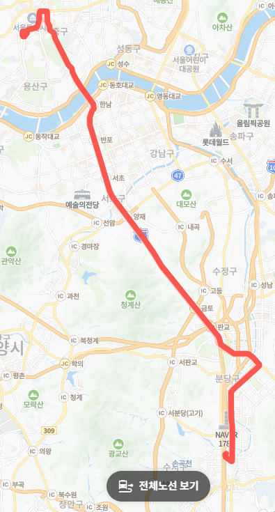 M4102번 버스는 '광역급행버스'라는 이름에 걸맞게 빠른 이동을 가장 큰 장점으로 내세웁니다. 성남 지역에서는 오리역, 미금역, 정자역, 서현역 등 주요 지하철역과 주거 단지를 거치고, 서울 도심에 진입하기 전에는 고속도로를 이용해 중간 정류장 없이 빠르게 이동합니다. 덕분에 일반 시내버스보다 훨씬 단시간에 목적지에 도착할 수 있습니다. 서울 도심의 주요 업무지구인 남대문, 명동, 종로 일대를 지나기 때문에 해당 지역으로 출퇴근하는 직장인들에게 매우 편리한 노선입니다.