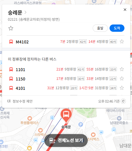 마지막 정류장 숭례문 위치 알아보기