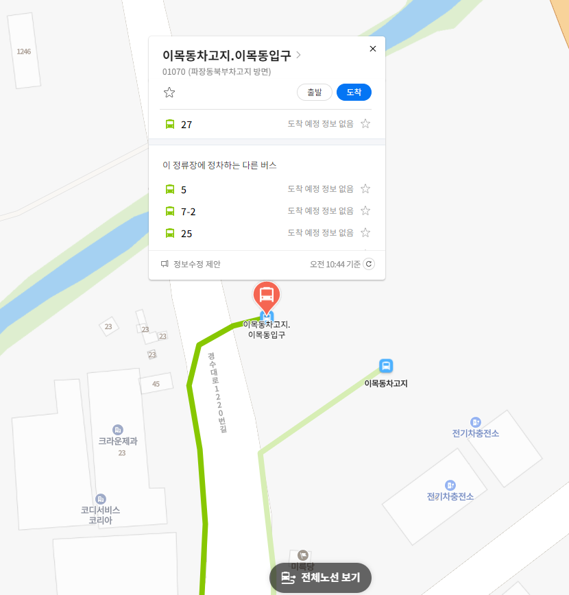 첫 번째 정류장 이목동차고지.이목동입구 위치 알아보기