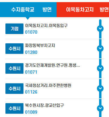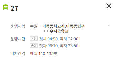 기점행 : 첫차 : 04:50 막차 : 22:30