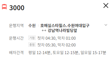 기점행 : 첫차 : 04:30 막차 : 01:00