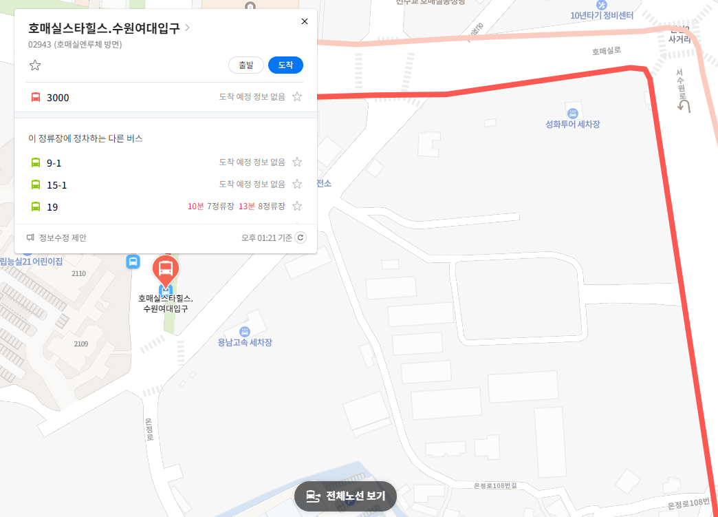 첫 번째 정류장 호매실스타힐스.수원여대입구 위치 알아보기
