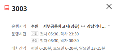 입석 불가: 3003번 버스는 좌석제로 운영되므로 입석이 불가능합니다.