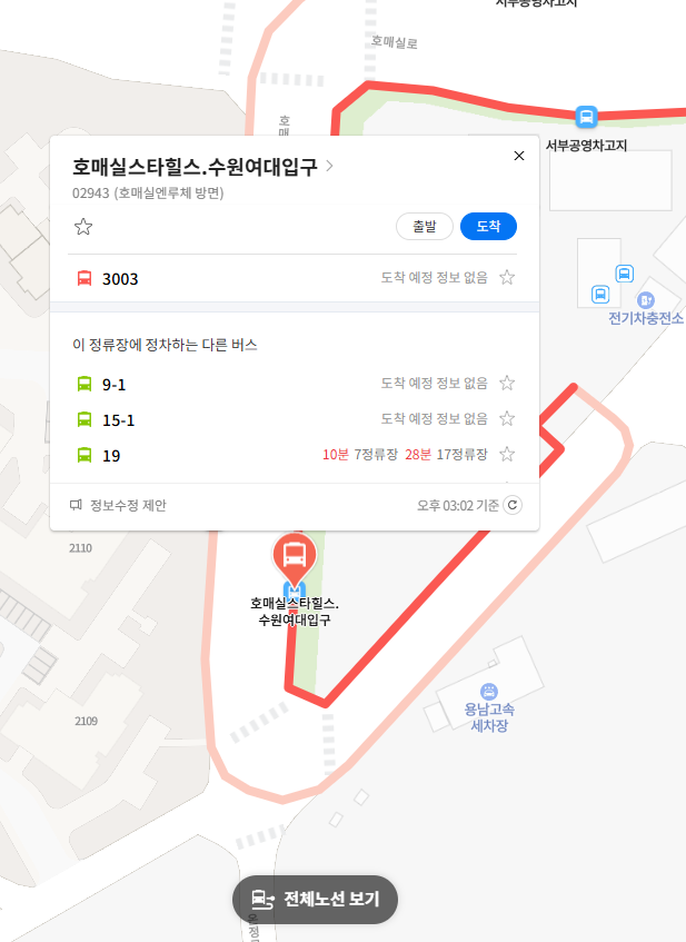 첫 번째 정류장 호매실스타힐스.수원여대입구 위치 알아보기