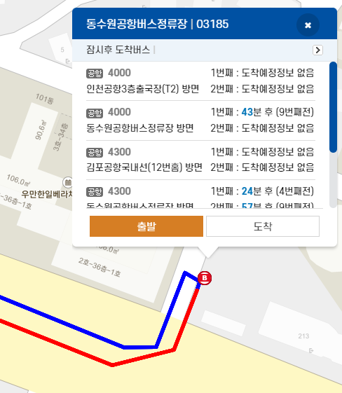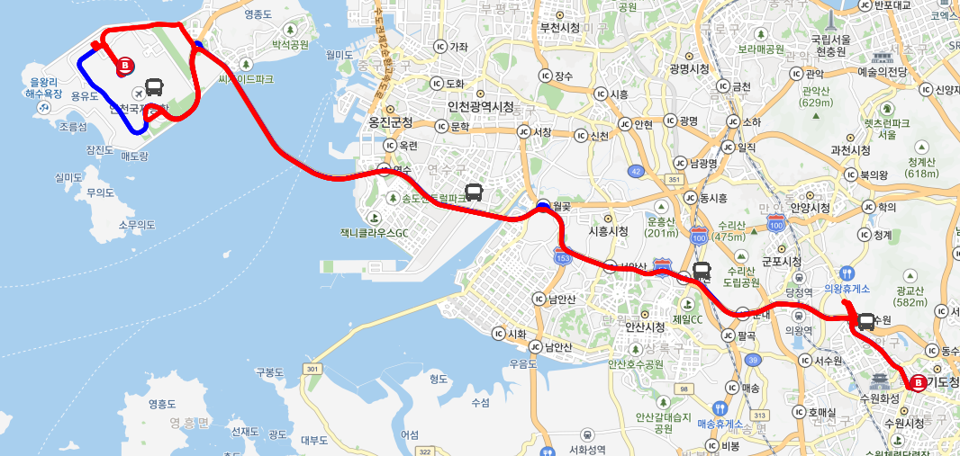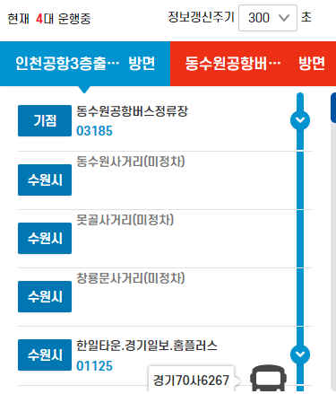 기점 : 동수원공항버스정류장 종점 : 인천공항3층출국장(T2)