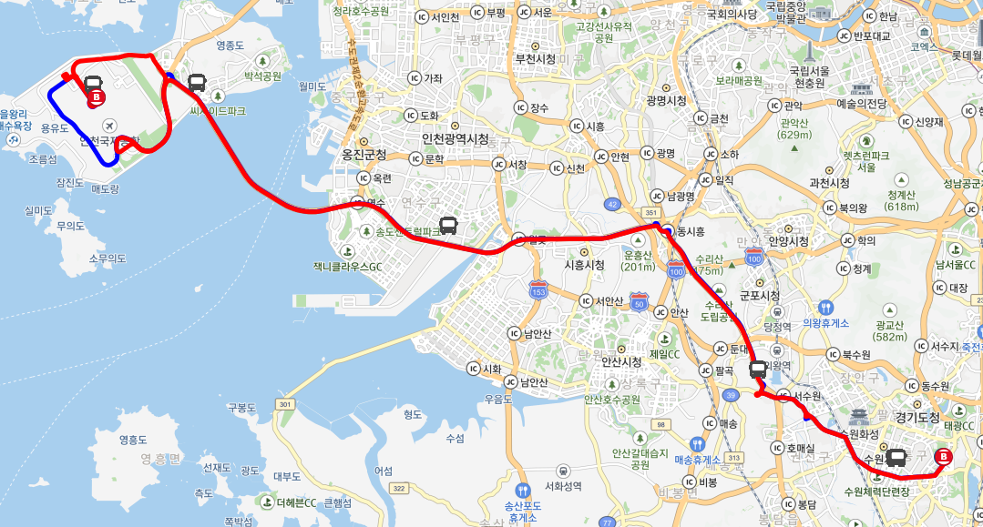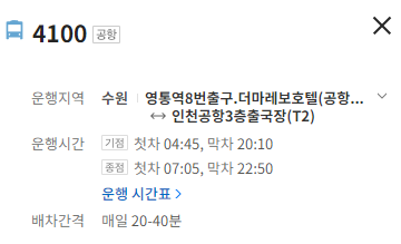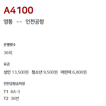 기점 : 영통역8번출구.더마레보호텔(공항버스)