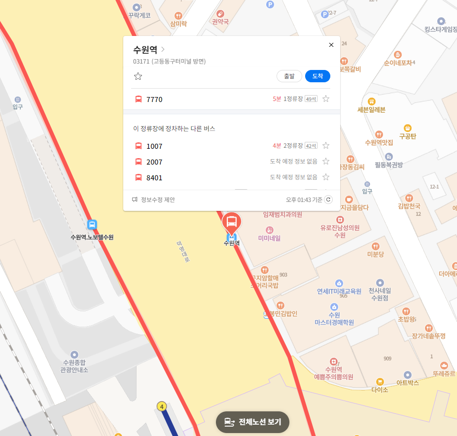 첫 번째 정류장 수원역 위치 알아보기