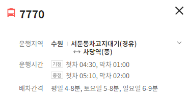 종점행 : 첫차 : 05:10 막차 : 02:00