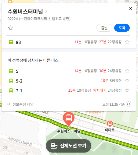 수원 88번 버스 실시간 위치 조회하기