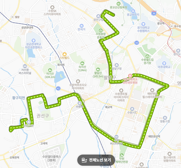 수원 시내버스 중에서도 꽤 안정적인 배차 간격을 유지하는 편입니다.