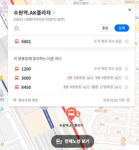 첫 번째 정류장 수원역.AK플라자 위치 알아보기