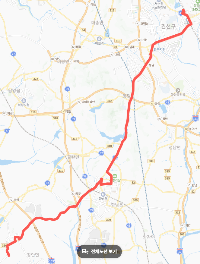 발안 지역 연결: 화성중앙병원, 발안사거리, 발안만세시장 등 발안의 핵심 지역을 지나면서 상업, 의료, 생활 편의시설 접근성을 높여줍니다.