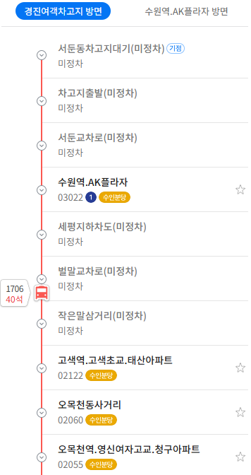 직행좌석버스인 만큼 일반 시내버스보다 정류장 수가 적어, 전체적인 이동 시간이 짧아지는 효과가 있습니다.