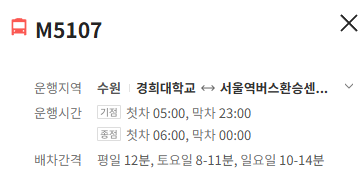 수원 M5107번 버스 배차간격
