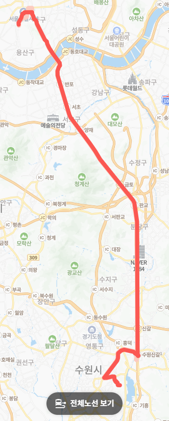 ● 도심 접근성: 한남대교 앞에 있는 한남2고가차도로 다니는 노선이라 다른 노선과 달리 순천향대학병원에 정차하지 않아 도심 접근 및 나갈 때 시간적 이득을 볼 수 있습니다.