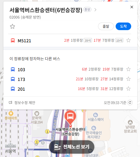 마지막 정류장 서울역버스환승센터(6번승강장)(중) 위치 알아보기