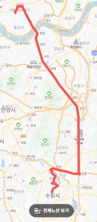 ● 광교테크노밸리 등 주요 거점 연결: 광교 지역에서 서울로 출퇴근하는 수요가 많으며, 서울에서 광교테크노밸리로 출퇴근하는 수요도 상당하여 양방향으로 수요가 높은 노선입니다.