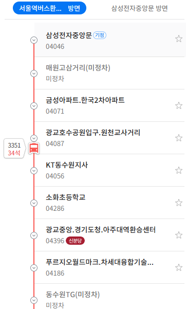 혼잡 시간대: 출근 시간대에는 광교중앙역 등 주요 정류장에서 이미 만석이 되는 경우가 많아 푸르지오 월드마크 등 그 이후 정류장에서는 탑승이 어려울 수 있습니다.
