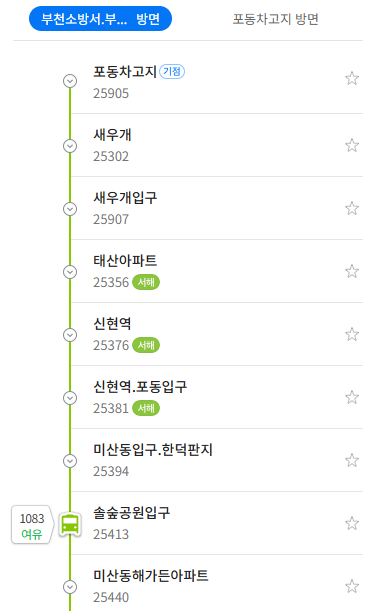 주요 버스 정류장 부천소방서.부천대학사거리 위치 알아보기