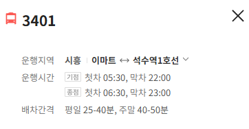 시흥 3401번 버스 배차간격